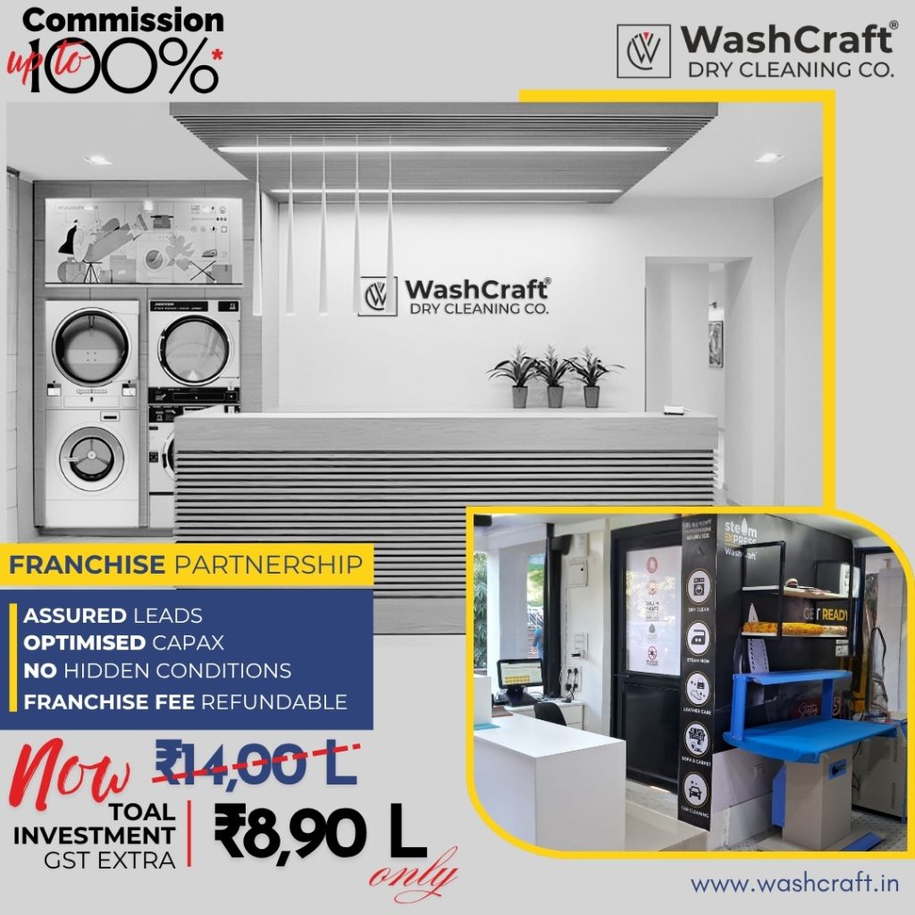 Investing heavily in a large-scale setup before any actual demand has materialized is a significant risk that businesses often face. In the dry cleaning industry, a new venture typically begins by processing an average of 60 to 70 garments per day. Under these circumstances, investing in expensive machinery is not only avoidable but also serves to inflate operational costs manifold. The WashCraft QuickLite model can prove to be a highly prudent first step for your business. This is a highly efficient mini-setup that works in a shop of just 250 to 350 square feet. This is the perfect size for your business—one that is designed to scale and grow right alongside you. It is available at an affordable price of just ₹8,90,000, a package that includes highly professional-grade equipment, a branded mobile app, and lifetime marketing support. This model is designed for the enterprising—specifically working professionals and women entrepreneurs—who subscribe to the “Karke Dekhte Hain” philosophy.